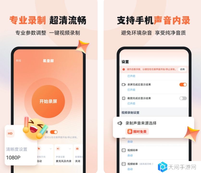 这是一款好用的软件,支持横竖屏、麦克风设置,小巧无须root,一点就能用,能适应不同的使用场景。在画质方面表现出色,可提供高清的出片效果,让视频细节清晰可见。