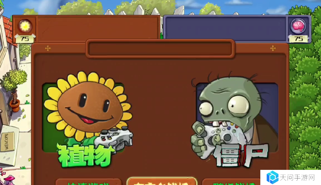 在对战模式内,也有另一个菜单设置,玩家可以通过菜单设置来控制植物或者是僵尸的刷新频率,为另一个玩家制造难题,并且在对战模式之中,由于双方的资源储备是不同的,例如,作为植物一方的玩家,需要通过收集阳光的方式,来对抗僵尸玩家,而僵尸玩家在使用了植物玩家的基建时,可以获得脑子这一个资源。