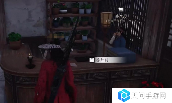 2、往前走进入左边第一个店铺对话【乔红药】触发任务;