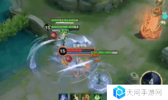 二技能“过海”则是空空儿的核心技能之一。空空儿原地制造一个分身,自己向前位移并对路径上的敌人造成伤害,同时获得护盾。护盾的加成是400点基础加上生命值的8%。这技能不仅能让空空儿灵活机动,还能保证一定的生存能力。即使敌人对你发起攻击,你也能依靠这两个分身吸收一部分伤害。