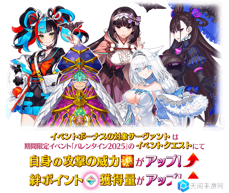 在限时活动“情人节2025年”中,一些从者将获得诸如“增加攻击力量”和“增加债券点的力量”之类的奖金!