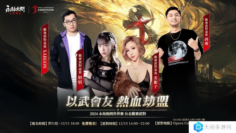 此次赛事也首度在台北知名酒吧 Opera Cocktail Bar 举办劫盃观赛派对,活动将开放亚服玩家免费报名,邀请到知名实况主 Xargon、妲妲咬果冻、美絮子 Melody、蒋西南到场作为特别来宾跟玩家一起组队同乐。