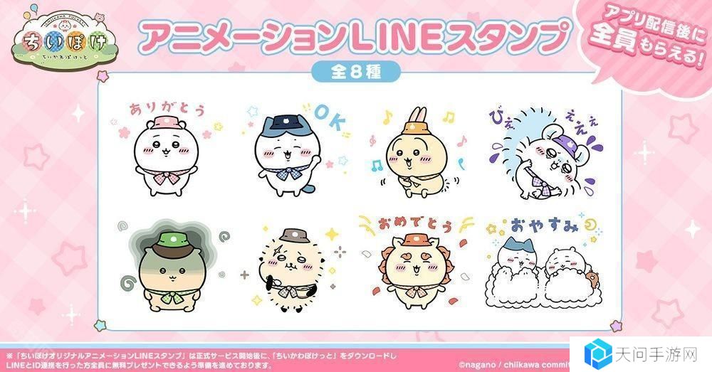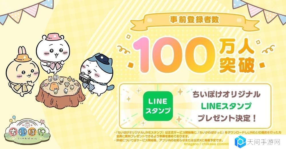 官方也宣布《吉伊卡哇 Pocket》的事前登录人数突破 100 万人,决定于游戏上线后免费赠送「吉伊卡哇 Pocket 原创 LINE 贴图」给所有玩家,并首次公开该贴图的插图(全 8 种)。